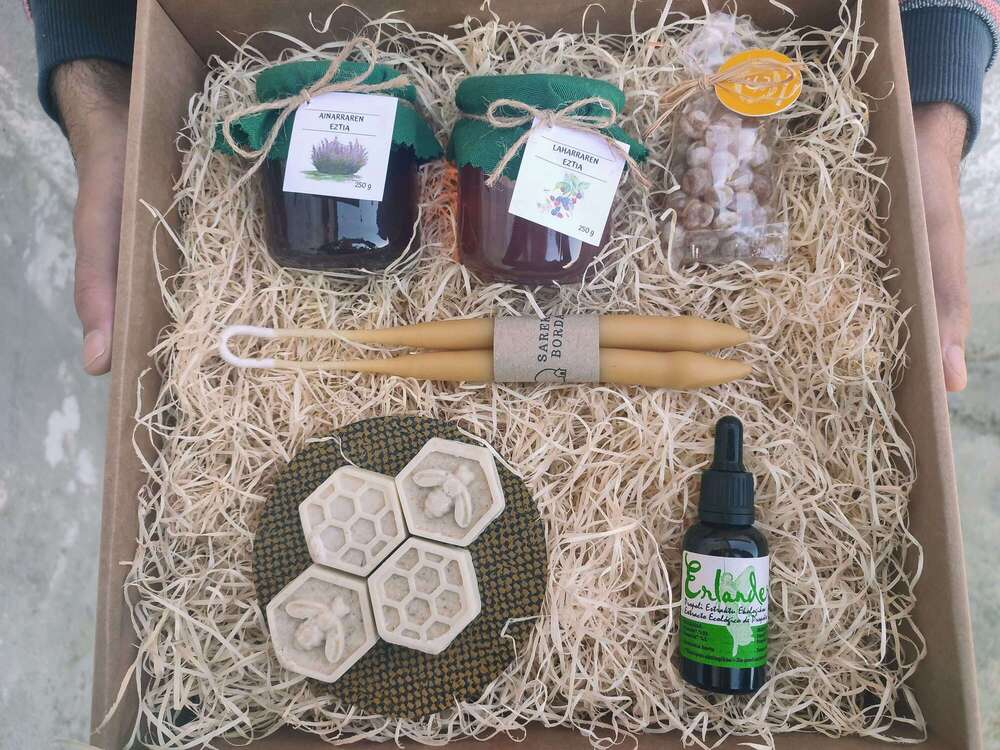 -Ekoizpen propio kandelak: erleen argizariarekin eskuz egindako kandela parea, 40-50 gramokoa bakoitza.